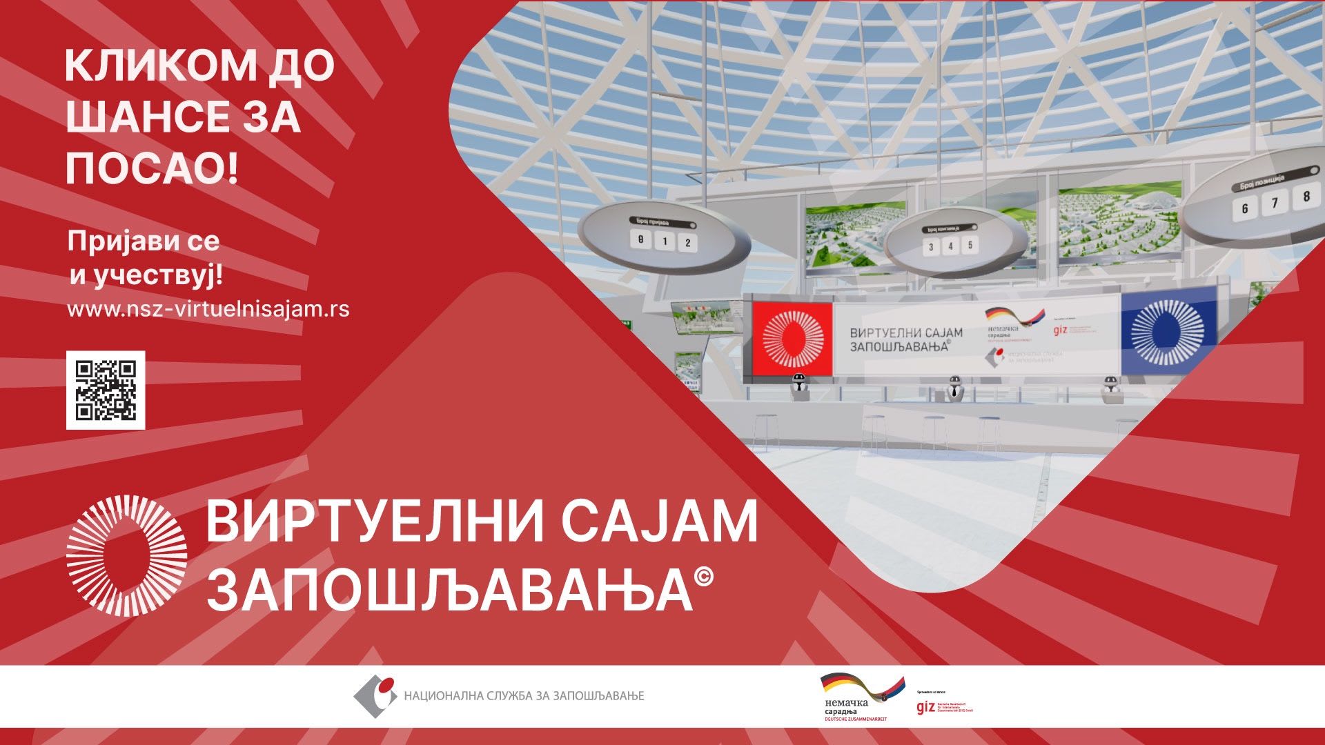 Национална служба за запошљавање (НСЗ) организује виртуелни Сајам запошљавања, коришћењем иновативне интернет технологије која обезбеђује једноставан приступ и виртуелно окружење прилагођено корисницима.